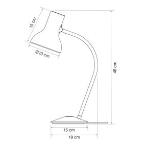 | Afmeting | Breedte: 19cm Hoogte: 46cm Kabellengte: 180cm Doorsnee lampenkap: 13cm Doorsnee voet: 15cm |