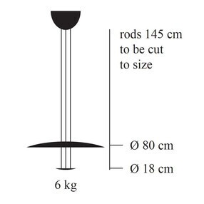 | Afmeting | Hoogte: 145cm Doorsnee: 80cm Kabellengte: 145cm Doorsnee baldakijn: 21cm Doorsnee lampenkap: 80cm |