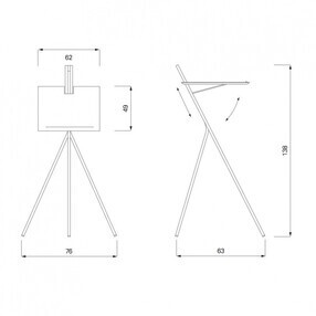 es zwart/onderstel wit aluminium/H 140cm