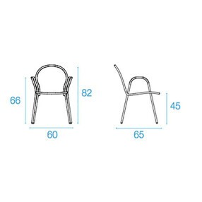| Afmeting | Breedte: 60cm Hoogte: 82cm Diepte: 65cm Zithoogte: 45cm Hoogte armleuning: 66cm |