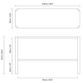 eiken/geolied/lxbxh 100x30x57cm/afgeronde, blad-achtige plankpoten