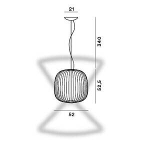 | Afmeting | Hoogte: 52.5cm Doorsnee: 52cm Kabellengte: 340cm Doorsnee baldakijn: 21cm Doorsnee lampenkap: 52cm |