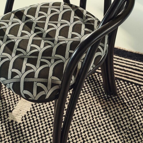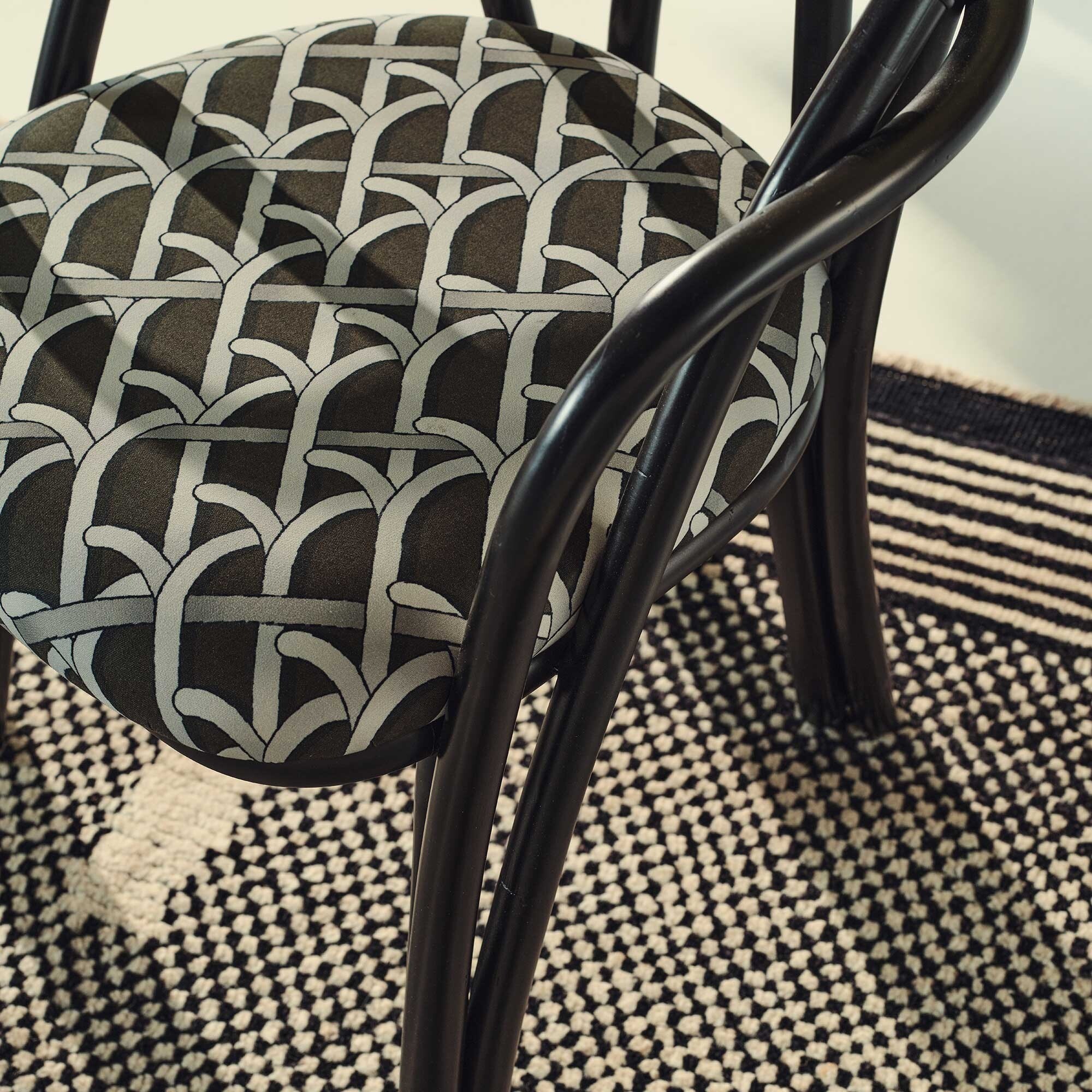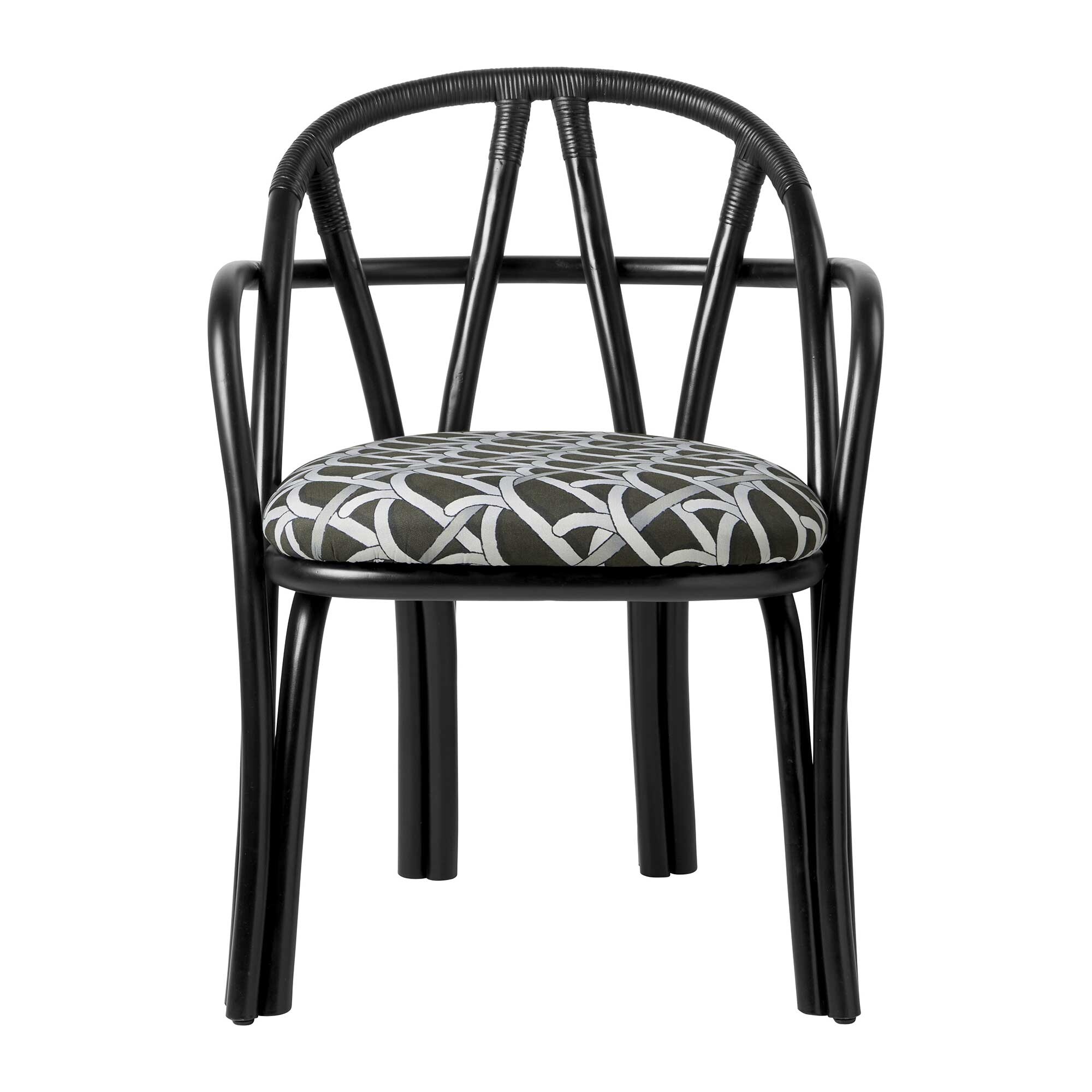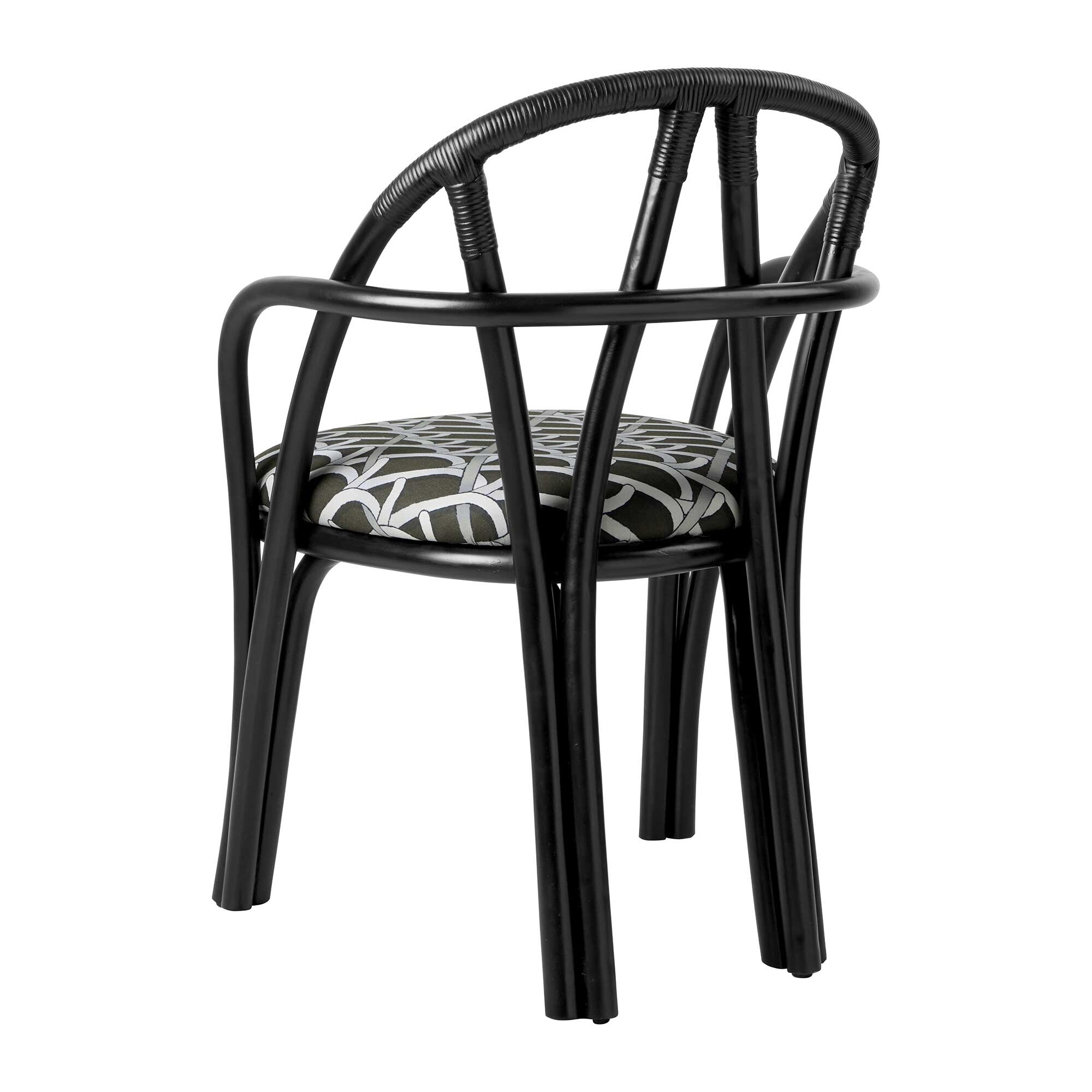 zwart met patroon/Basic Reales Patterns 003 (100% katoen)/onderstel van ebbenhout gelakt rotan/66x81,5x55,5cm bxhxd