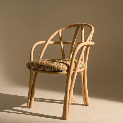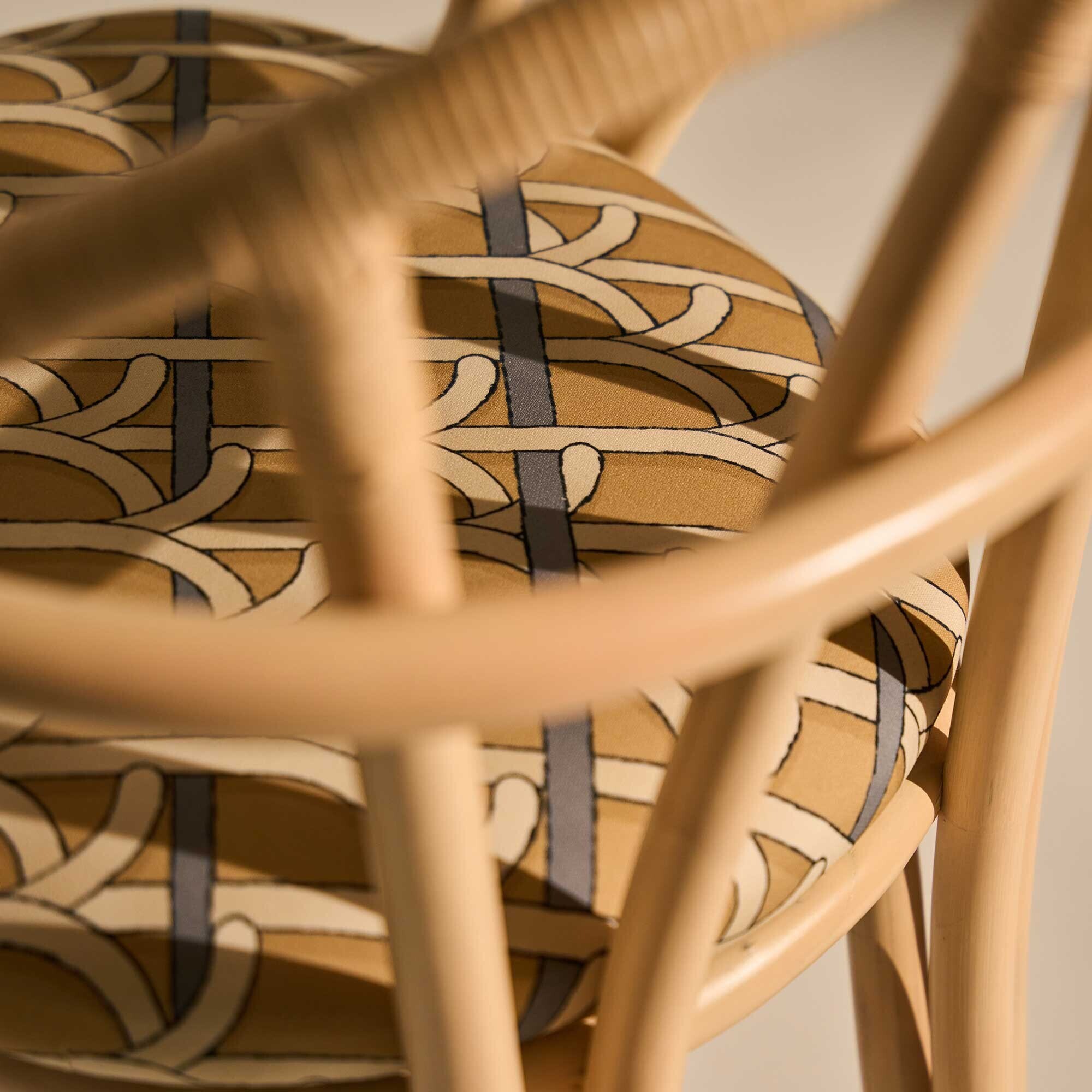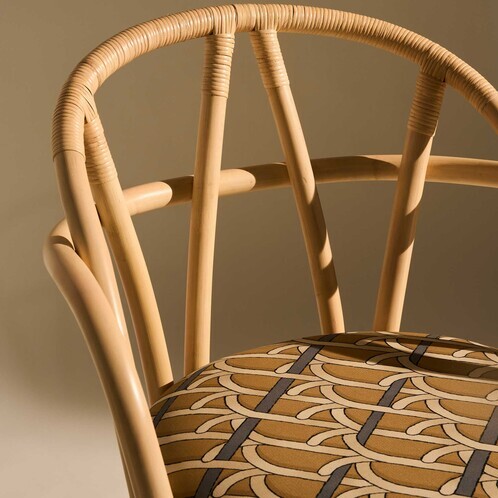 beige met patroon/Basic Reales Pattern 002 (100% katoen)/onderstel van rotan natuur/66x81,5x55,5cm bxhxd