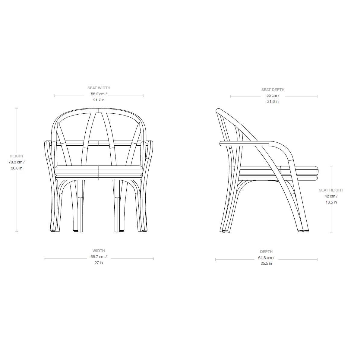 | Afmeting | Breedte: 66cm Hoogte: 81.5cm Diepte: 55.5cm Zithoogte: 46.2cm |