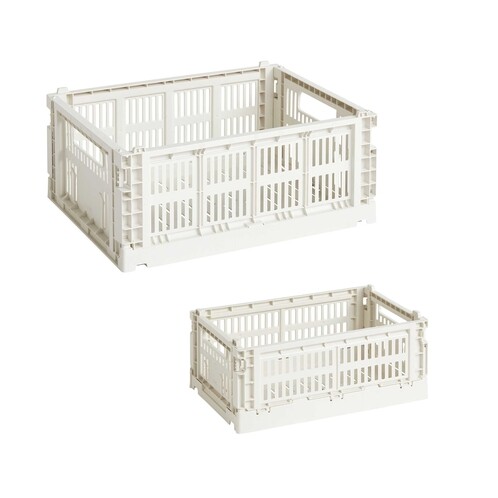 Colour Crate mand gerecycled S + M set van 2 / gebroken wit/26,5x34,5x14cm lxbxh/ 26,5x17x10,5cm lxbxh/vouwbaar/stapelbaar