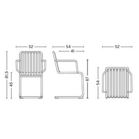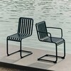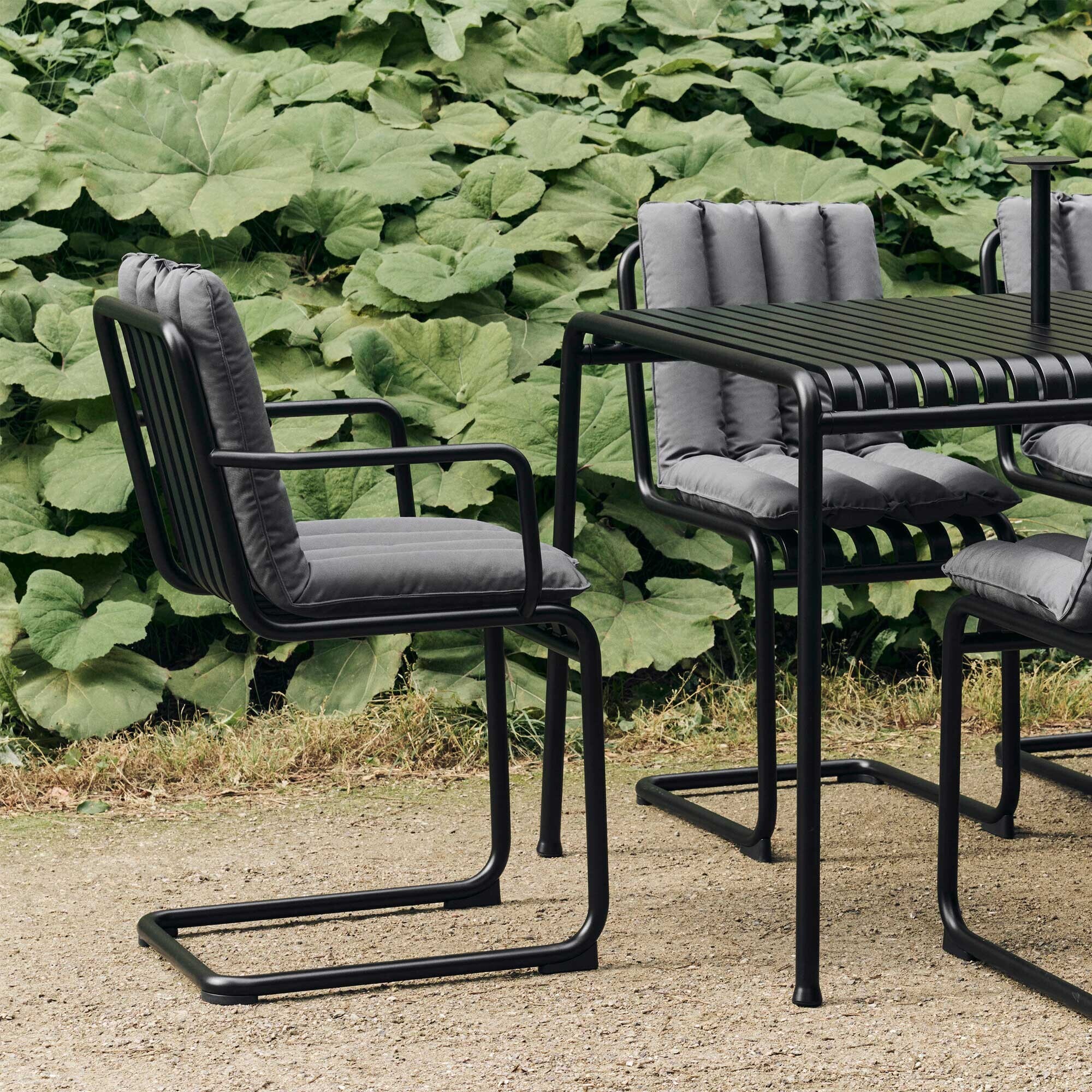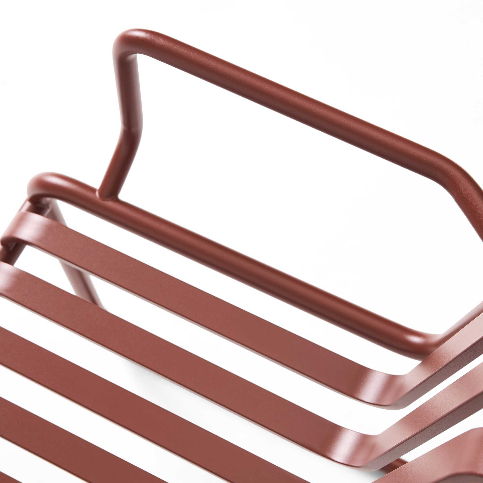 De Palissade Cantilever fauteuil is gemaakt van gepoedercoat of thermisch verzinkt staal en biedt een hoge weerbestendigheid en uitzonderlijke robuustheid. De open structuur voorkomt waterophoping, bevordert de luchtcirculatie en benadrukt de moderne, grafische look van de stoel. Dit maakt hem ideaal voor permanent buitengebruik.
