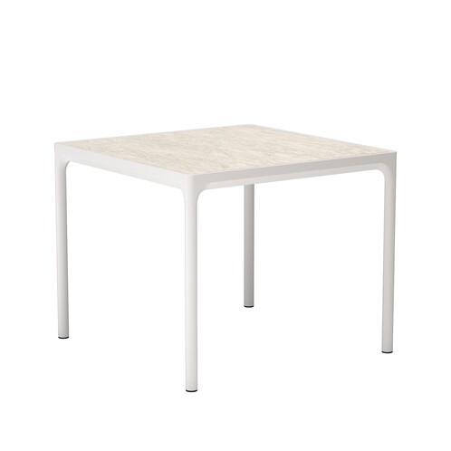 gedempt wit, schaal/keramisch tafelblad/frame van gepoedercoat aluminium/90x90x74cm lxbxh