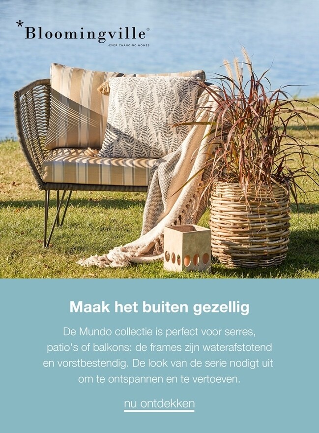 Het Deense merk Bloomingville fascineert sinds zijn oprichting in het jaar 2000 met prachtige ontwerpen van meubels en woonaccessoires met Scandinavische flair. Heldere kleuren en eenvoudige vormen verenigen zich tot een kenmerkende, herkenbare stijl die wereldwijd veel fervente fans heeft. Inmiddels behoort Bloomingville tot de toonaangevende makers van producten voor een gezellig, stijlvol huis. De wensen en behoeften van de klant staan daarbij altijd voorop en zijn doorslaggevend bij de vormgeving.