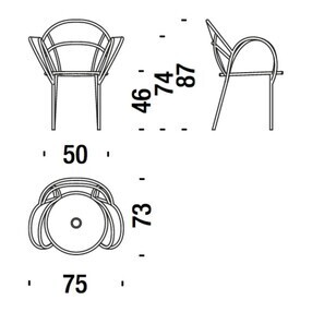 Afmeting | Breedte: 75cm Hoogte: 87cm Diepte: 73cm Zithoogte: 46cm Hoogte armleuning: 74cm Hoogte rugleuning: 87cm ![]() |