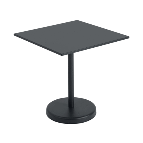 Frame en tafelblad zijn gemaakt van staal met een weerbestendige, diep matte, UV-bestendige poedercoating. Het tafelblad is van aluzink en de poten zijn elektrolytisch verzinkt, waardoor ze geschikt zijn voor buitengebruik. Poten worden geleverd met plastic glijders. |