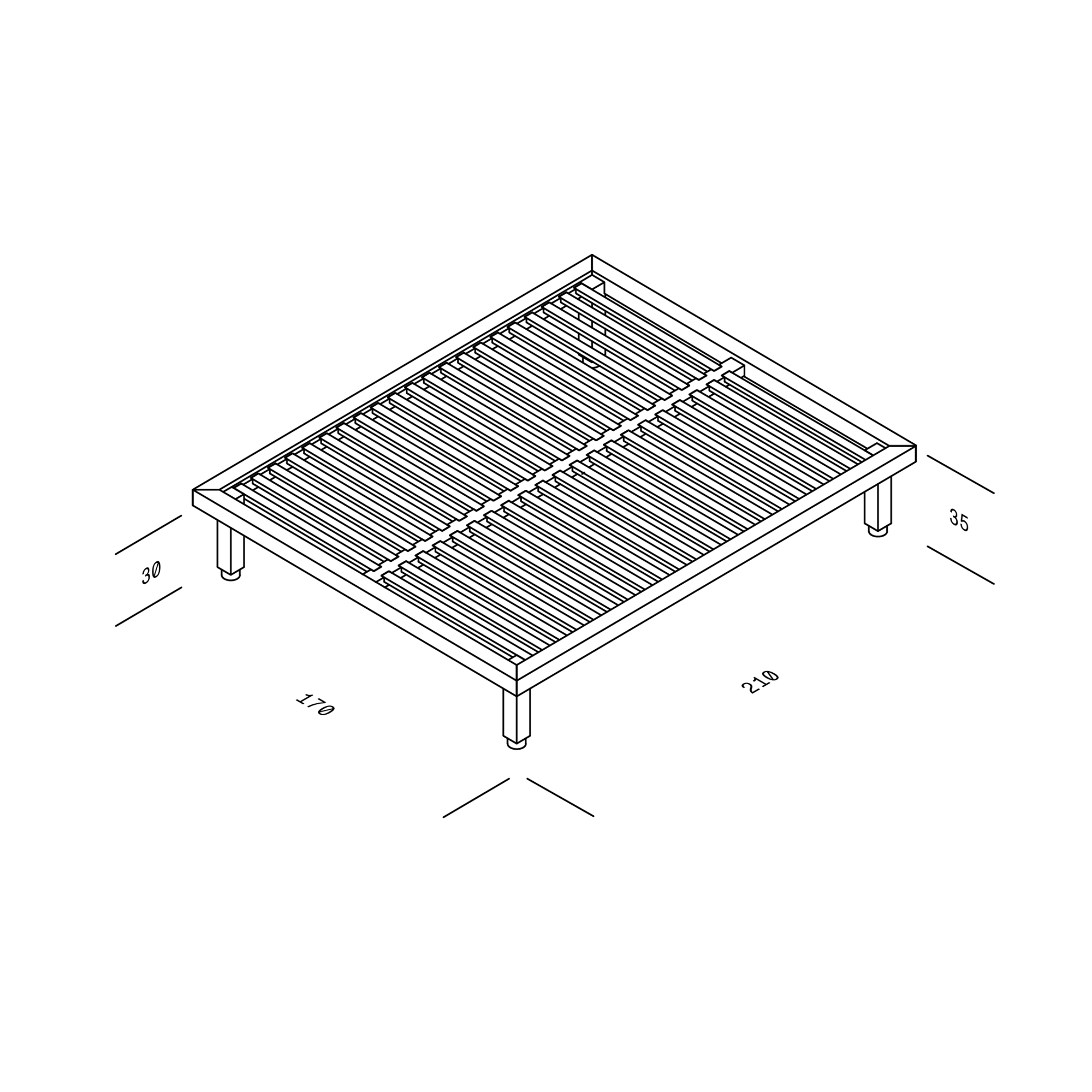 | Afmeting | Lengte: 200cm Breedte: as gewaxt: 160cm basalt: 180cm eiken gewaxt: 160cm krijt: 180cm Hoogte: 38cm |