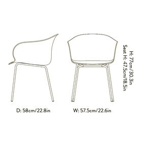 Afmeting | Breedte: 57.5cm Hoogte: 77cm Diepte: 58cm Zithoogte: 47.5cm ![]() |