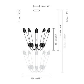 Lemon Squeeze kroonluchter lang / messing/geplateerd/97,5x68,8cm hxØ/5x GU10 fitting/zonder lamp/extern dimbaar