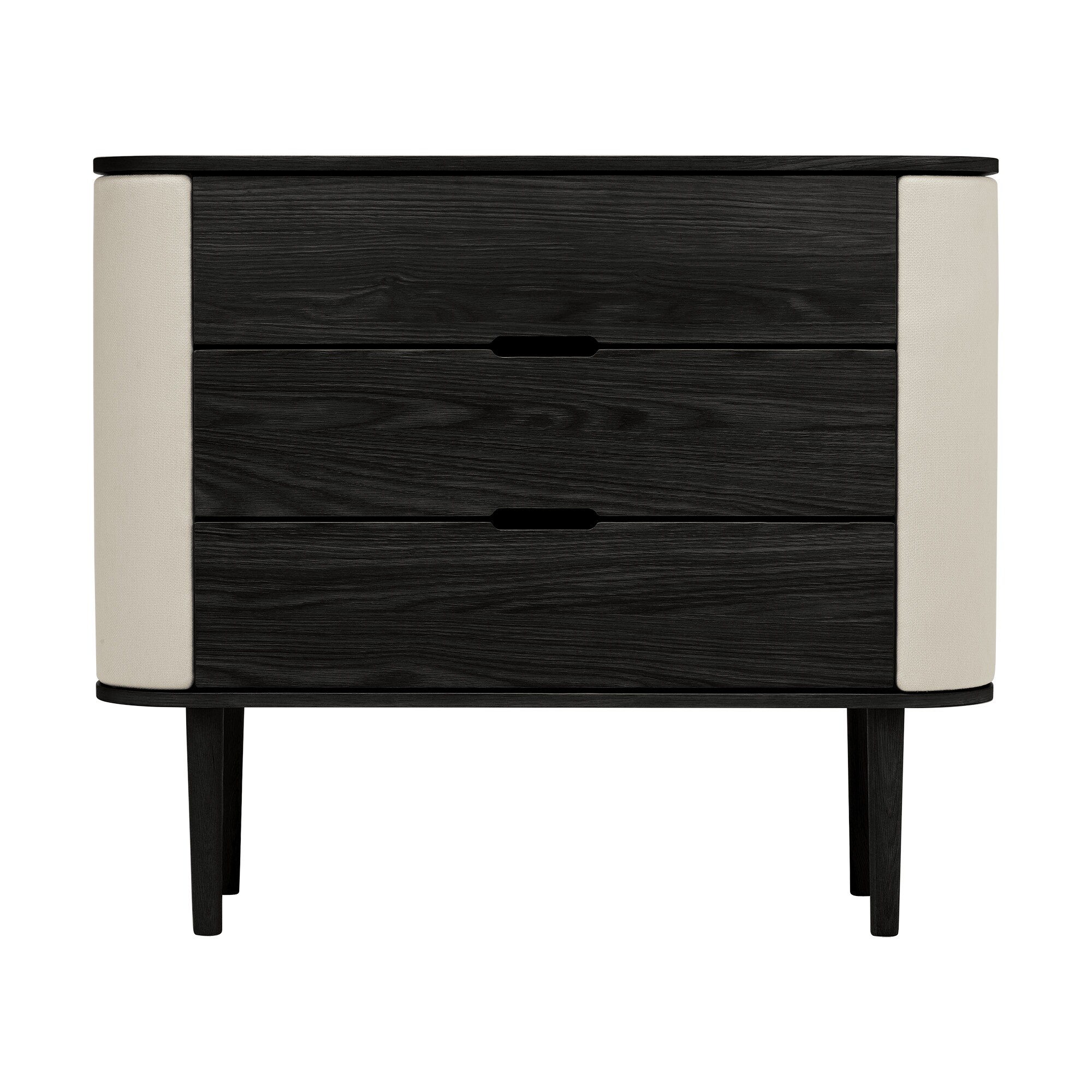 zwarte eiken, witte zanden/109,2x93x43cm bxhxd/3 laden, 2 deuren