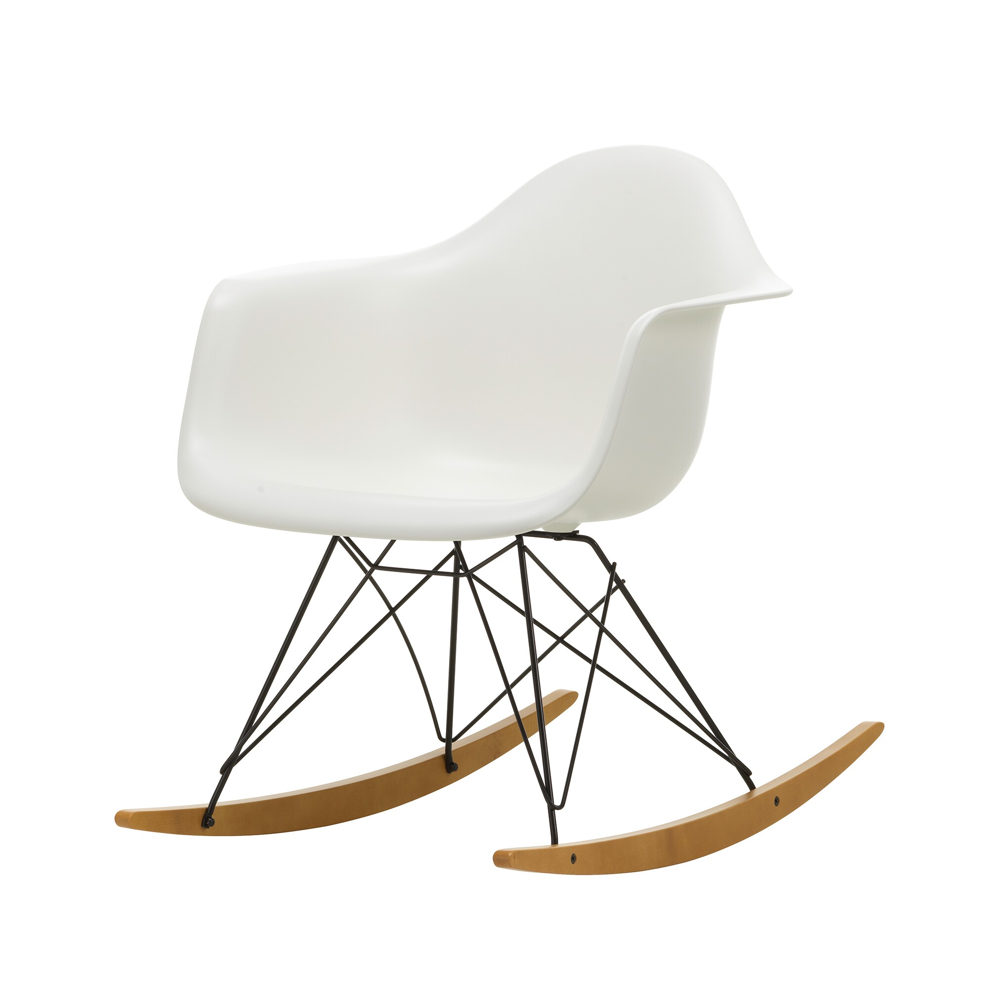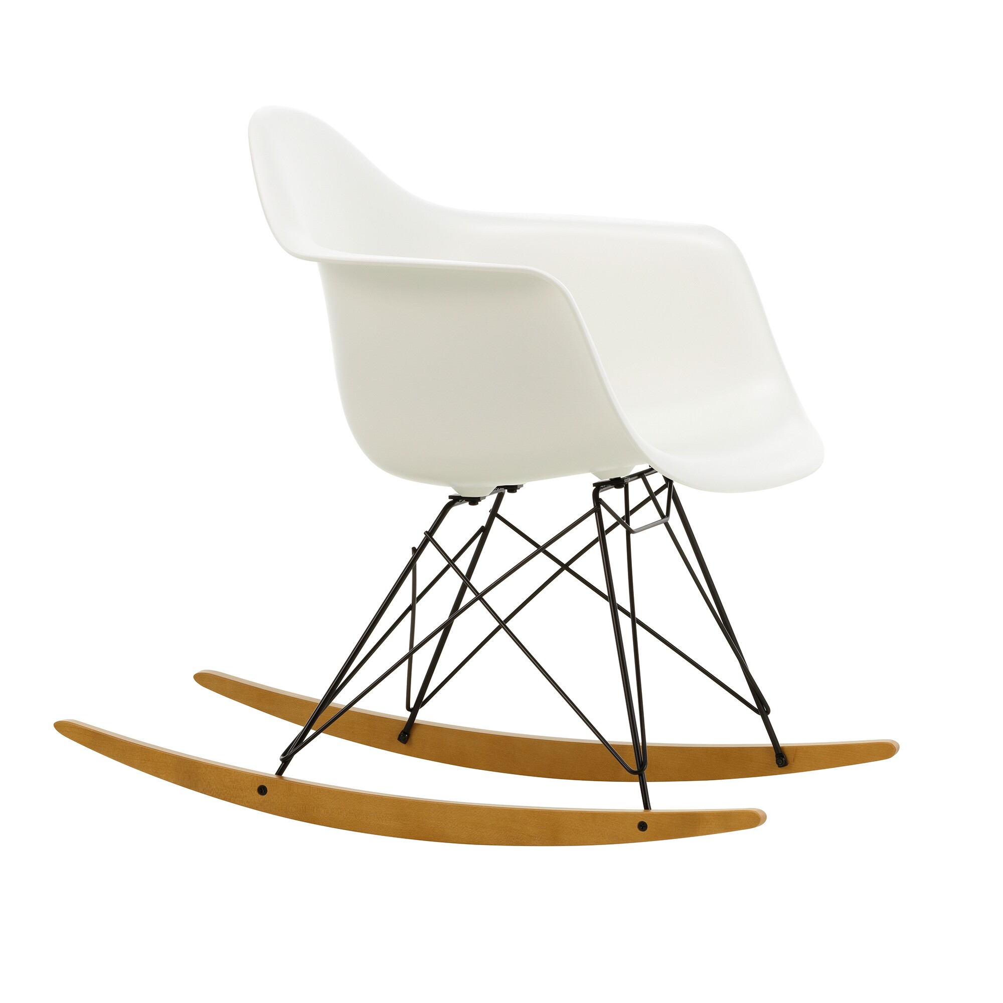 Eames Armchair RAR schommelstoel onderstel zwart gouden esdoorn Dit product is door Charles & Ray Eames voor het merk Vitra ontworpen.