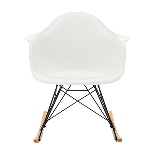 Eames Plastic RAR schommelstoel onderstel zwart gouden esdoorn / wit/zitschaal polypropyleen/onderstel verchroomd/ gouden esdoorn/63x76x81cm bxhxd
